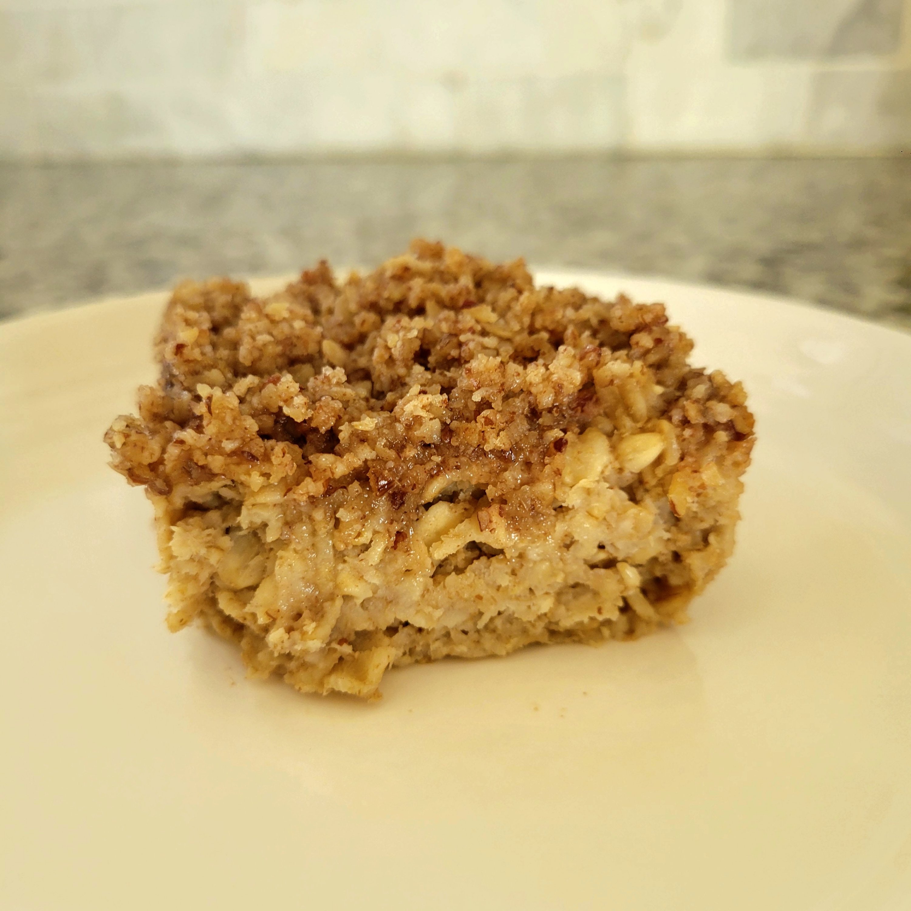 Using a food processor, pulse the oats and pecans together to create a coarse meal. Transfer to a medium bowl and add in the remaining streusel ingredients. The topping should look like a wet sand. Sprinkle the topping over the baked oatmeal.