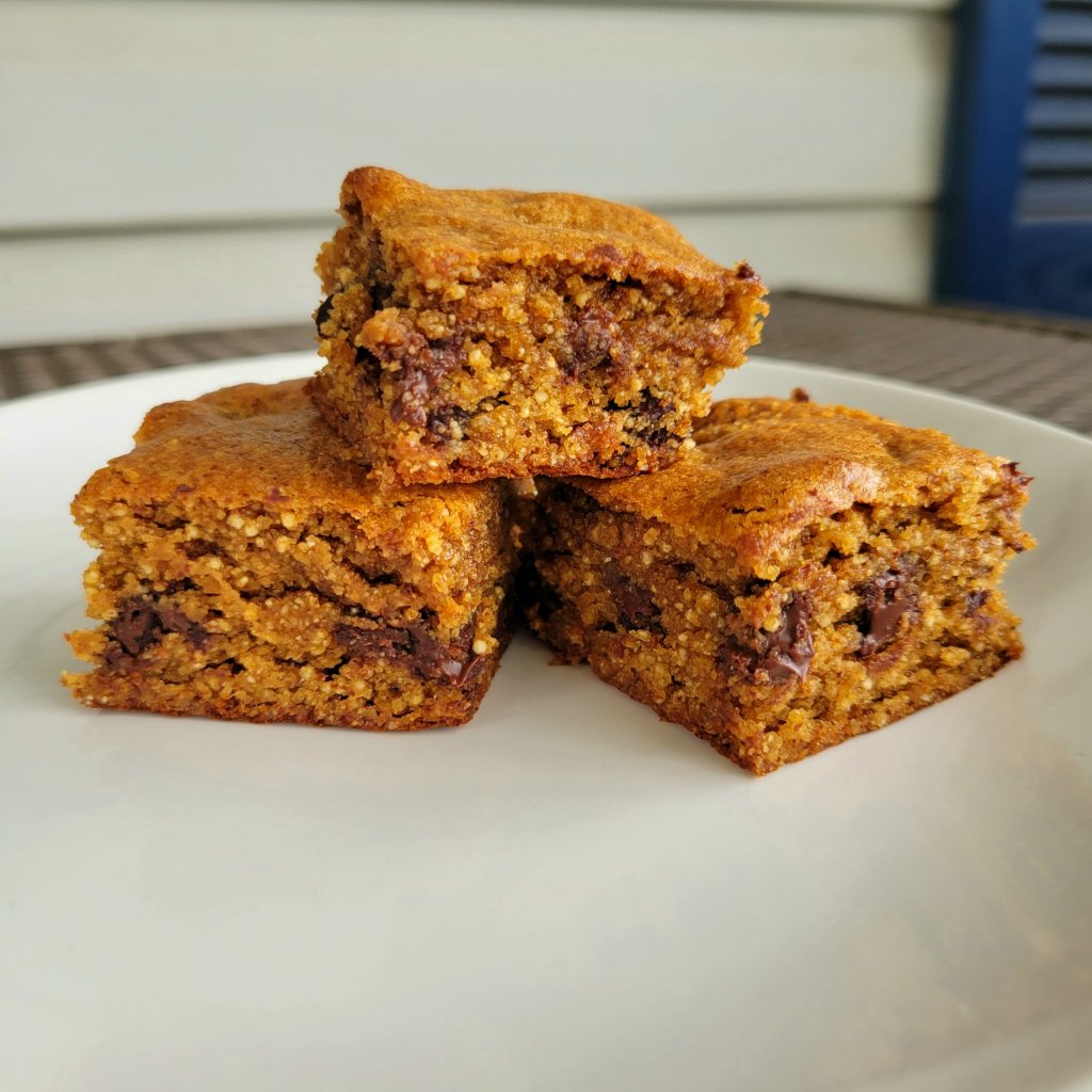 In a separate bowl, stir together the quinoa flour, salt, and baking powder. Mix the flour into the wet ingredients and mix until just combined. Fold in the chocolate chips. Pour into the prepared dish and spread evenly.