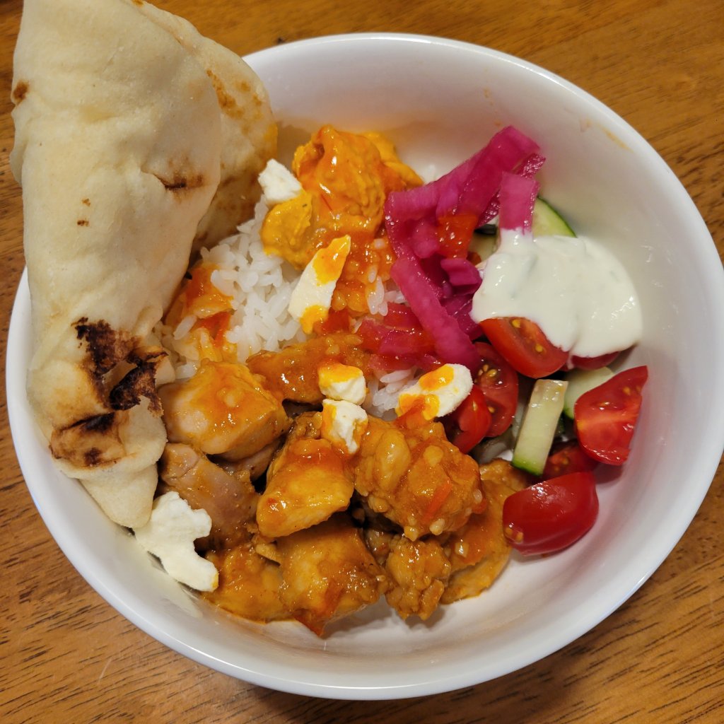 I was in the mood to recreate one of their bowls, especially since I had some leftover harissa and feta tzatziki that needed to be used up. I’ll definitely grill the chicken thighs next time. It was a big hit with my entire family, and we’ll definitely be making it again.