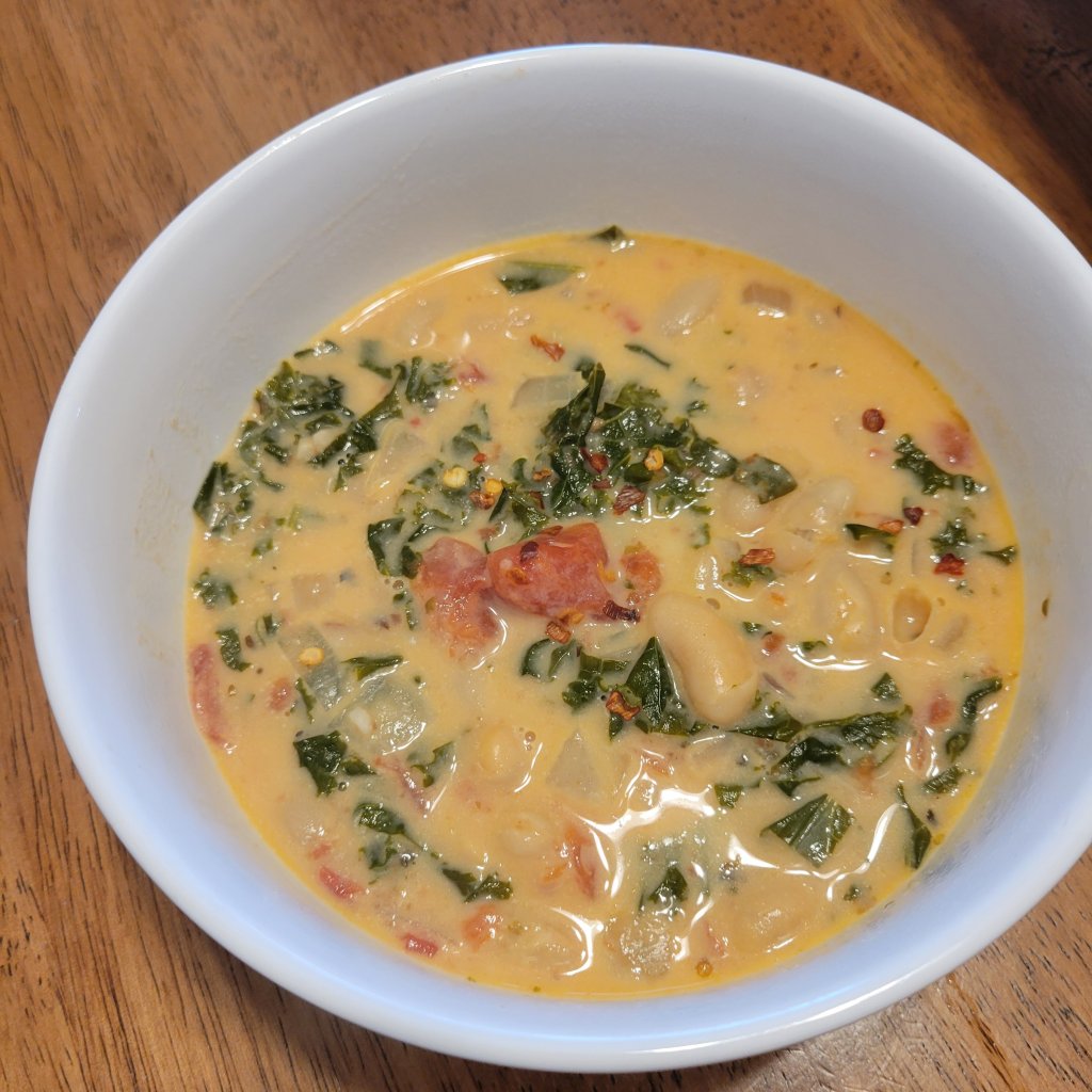 The soup is easy to make and fairly inexpensive to make. The parmesan flavor is pretty strong but we all love parm, so it wasn’t an issue. I swapped kale for spinach since that’s what I had on hand and served with a slice of crusty bread.